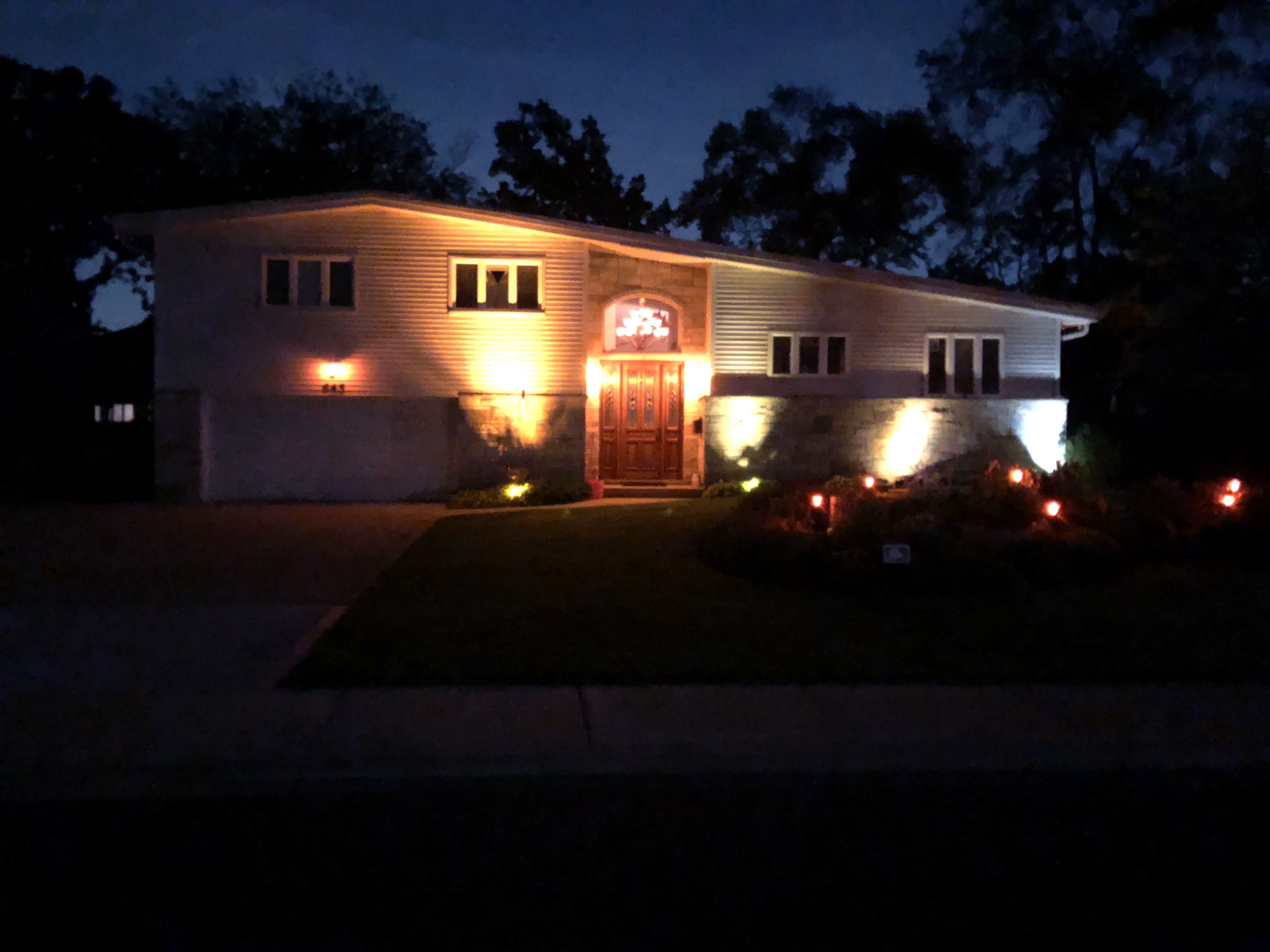 amber light gels installed inside low-voltage landscape light fixtures